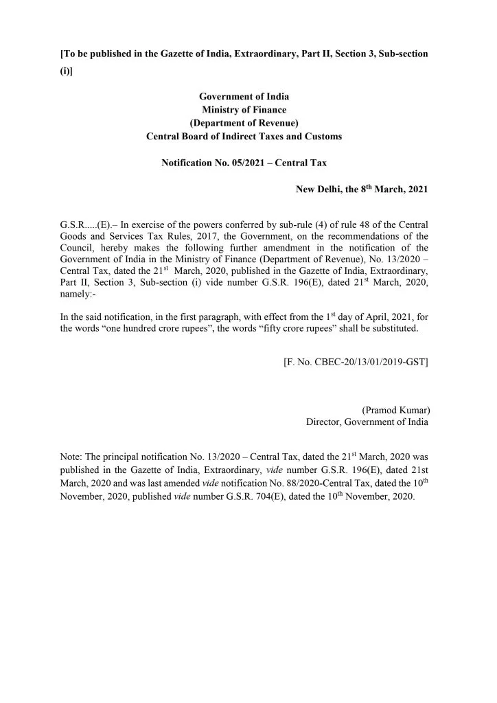 The Tax Payers Whose Aggregate Turnover Exceeds 50 Crore rupees Should generate E-Invoice for B2B supply of Goods Or Services Or Both with effect from 01-04-2021.